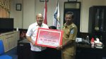 Penyerahan dilakukan oleh Bupati Minahasa Ir Royke Oktavian Roring MSi (ROR) dan Wakil Bupati Minahasa Robby Dondokambey SSi (RD) yang diwakili Kepala Badan Penanggulangan Bencana Daerah (BPBD) Kabupaten Minahasa Johanis Pesik, diterima Wakil Bupati Jayapura Sigi Widiantoro bersama Kepala Dinas Keuangan Daerah Kabupaten Jayapura, (1/4/2019) di Ruang Kerja Wakil Bupati Jayapura.