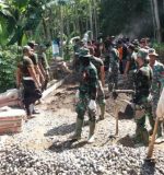Mereka bahu membahu melahap semua pekerjaan bersama-sama dengan anggota Satgas TMMD. Dengan bergotong- royong semua pekerjaan berat dapat teratasi dengan ringan.