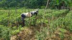 Tampak terlihat anggota satgas TMMD Kopda Rusmadi sedang membantu Narti membersihkan gulma rumput disekitaran tanaman cabai. Dikatakan oleh Rusmadi jika selepas bekerja ia membantu mencabuti rumput gulma dengan alat sederhana pada tanaman cabai milik Narti yang tak jauh dari rumahnya.
