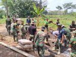 Meski medan dan cuaca yang tidak mendukung,warga tetap antusias semangat tinggi dengan TNI bahu membahu memindahkan dan minyiapkan material di lokasi pembangunan tersebut.Material pasir maupun kris tidak bisa langsung mencapai sasaran,harus di langsir.
