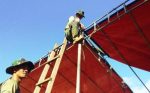 Dengan semangat yang tinggi, Personel satgas TMMD ke-105 Kodim 1310/Bitung membantu warga mendirikan tenda, (22/7/2019).