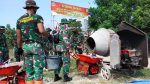SULUTDAILY//Pati-Kesibukan luar biasa ditunjukkan oleh anggota satgas TMMD regular 111 yang sedang mempersiapkan acara pembukaan TMMD, salah satunya adlah personel dari Batalyon Zipur 4/Tanpakawandya sedang mengoperasionalkan mesin molen pengaduk semen dan pasir yang akan digunakan sebagai acara simbolis di sasaran pokok betonisasi jalan. Selasa,(15/06/2021).
