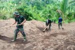 Walau cuaca sangat panas namun tak menyurutkan semangat warga dan anggota Satgas TMMD untuk tetap bekerja bahu membahu menuntaskan pekerjaan.