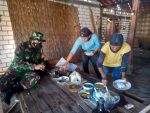 Tampak anggota satgas TMMD bersama masyarakat menikmati sarapan pagi disela pekerjaan rehab rumah tidak layak huni (RTLH) sebagai sasaran tambahan dalam program tersebut.