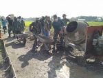 SULUTDAILY//PATI – Antrian panjang terjadi saat mesin molen mulai menumpahkan campuran cor yang siap di angkut dengan artco (gerobak dorong) untuk di dorong ke sasaran pengecoran jalan, keikutsertaan para anggota satgas TMMD 111 bersama masyarakat Desa Tamansari mampu memberikan semangat kususnya bagi warga Tamansari.