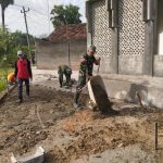 Berada di halaman sebuah mushola di Desa Tamansari Kecamatan jaken Kabupaten Pati,beberapa anggota TNI bersama-sama dengan warga sedang melaksanakan pembangunan pelataran.