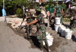Namun hal itu tidak terjadi pada Sertu Purwanto anggota Koramil 11 Gembong yang kali ini tergabung dalam Satgas TMMD Reguler Kodim Pati. Seperti terlihat kali ini, ia sedang melakukan pekerjaan mengisi ember-ember plastik yang sudah mengantri dengan materi pasir untuk dilangsir ke mesin pengaduk material cor atau biasa disebut mesin molen, Kamis (08/7/2021).