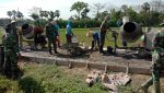 SULUTDAILY//Pati – Anggota Satgas TNI Manunggal Membangun Desa (TMMD) yang tetap bersemangat membuat mesin molen terus berputar untuk menggiling material batu koral, pasir dan semen menjadi adonan cor, dalam program TMMD Reguler ke-111 TA 2021 Kodim 0718/Pati, yang dilaksanakan di Desa Tamansari, Kecamatan Jaken, Kabupaten Pati. Minggu (4/7/2021).