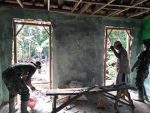 SULUTDAILY//Blora,Sejumlah anggota satgas TMMD reguler ke 104 kodim Blora dibantu masyarakat desa setempat terlihat bersemangat menyelesaikan pemasangan kusen pintu Mushola al ikhlas dukuh geneng rt 4 rw 2 desa jurang jero.