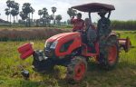 Serda Sukarji terlihat menikmati duduk diatas traktor yang dikemudikan Darwanto (32) warga Desa Glonggong, Kecamatan Jakenan, Kabupaten Pati. Traktor model besar ini bisa digunakan untuk membajak sawah milik warga Desa Tamansari yang dipersiapkan untuk ditanami jenis sayuran dan kacang tanah. Pasalnya paska panen padi, petani Tamansari menanami lahan sawahnya dengan berbagai tanaman sayuran dan buah-buahan serta palawija.
