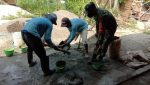 Tanpa mengenal lelah Serda Sutrimo memegang cangkul dan membuat adonan plesteran rumah di sektor rehab rumah tidak layak huni (RTLH) milik Ngarji (72) Rt. 3/2 dukuh Pandahan desa Tamansari kecamatan Jaken.