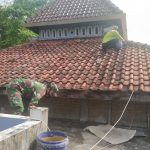 “Berdasar petunjuk dari tukang ahlinya, saya membuat adukan semen yang nantinya akan dipergunakan menutup celah pada genteng krepusnya agar tidak bocor,”Ujar Sertu Sumarno.