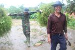SULUTDAILY//BLORA — Hujan yang mengguyur wilayah Desa Jurangjero Kecamatan Bogorejo membuat jalan licin tetapi warga yang punya peliharaan ternak harus tetap ambil rumput untuk pakan ternaknya.Karena jalan licin warga yang sedang memikul rumput terlihat kerepotan tetapi dengan sigap anggota Satgas TMMD Reguler ke 104 Kodim 0721/Blora membantu untuk memikul rumput tersebut.