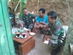 SULUTDAILY//Kudus- Satgas TNI Manunggal Membangun Desa Reg. ke – 107 Kodim 0722/Kudus di saat waktu luang istirahat sambil menikmati minum kopi bercengkrama dengan warga masyarakat Dukuh Talun Desa Kedungsari Kecamatan Gebog Kabupaten Kudus, Selasa 10/03/20