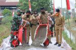SULUTDAILY//Pati – Forkopimda pati, Simbolis Pengecoran sasaran awal TMMD Reguler ke 111 Kodim 0718/Pati yang diselenggarakan di Desa Tamansari, Kecamatan Jaken, Kabupaten Pati, Selasa (15/06/2021), dihadiri pejabat dari lingkungan TNI dan Instansi Sipil jajaran Pemkab Pati.
