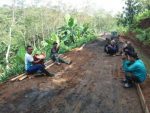 Kebersamaan TNI dan masyarakat nampak terlihat saat bekerja dan istirahat sambil menikmati rebusan singkong yang dikasih warga.