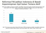 Survei menunjukkan mayoritas warga mendukung supermasi sipil (71%), dan mayoritas warga mendukung bahwa TNI harus di bawah komando dan kontrol kepala negara (Presiden) yang dipilih rakyat (76%).