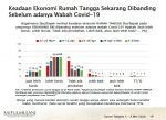 Mayoritas warga (79%) menilai kondisi ekonomi rumah tangga mereka memburuk dibandingkan sebelum adanya wabah Covid-19. Sementara yang menyatakan tidak ada perubahan hanya 19% dan yang menyatakan lebih baik jauh lebih sedikit lagi, yaitu 1%.