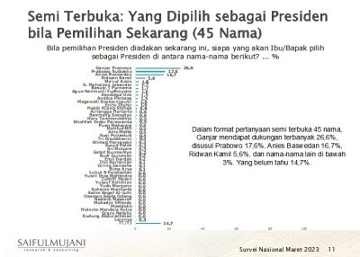 SMRC: Ganjar Terlalu Kuat Bagi Prabowo Dan Anies Politik|22 March 202324 March 2023by redaksi sd SULUTDAILY||Jakarta-Dukungan publik pada Ganjar Pranowo untuk pemilihan presiden (pilpres) masih lebih kuat