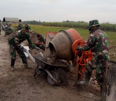 Bagaikan Membuat Adonan Kue, Anggota Satgas TMMD Operasionalkan Mesin Molen TMMD, TNI-POLRI News|17 June 202117 June 2021by narto pati SULUTDAILY//Pati-Tidak diragukan lagi kelihaian salah satu anggota satgas regular 111 Kodim Pati