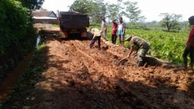 Bersama Warga, Satgas Perbaikan Jalan Demi Kelancaran Dropping Martial NGO|29 March 202029 March 2020by narto pati SULUTDAILY//Kudus – Pratu Suparji dan warga masyarakat memperbaiki jalan yang bergelombang agar