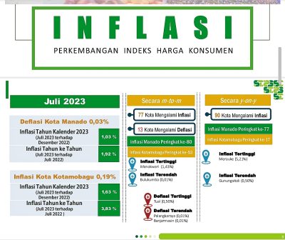 Juli 2023, Kota Manado Mengalami Deflasi 0,03 Persen Infografis|1 August 20231 August 2023by Jeane Rondonuwu SULUTDAILY|| Infografis -Kondisi bulan Juli 2023 Kota Manado mengalami deflasi sebesar 0,03