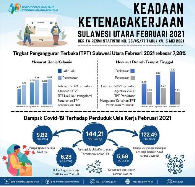 Covid-19 di Sulut, 7,43 Persen Penduduk Usia Kerja Terdampak Ekonomi|24 May 202124 May 2021by Jeane Rondonuwu SULUTDAILY|| Manado- Kepala Badan Pusat Statistik (BPS) Provinsi Sulut, Asim Saputra mengatakan