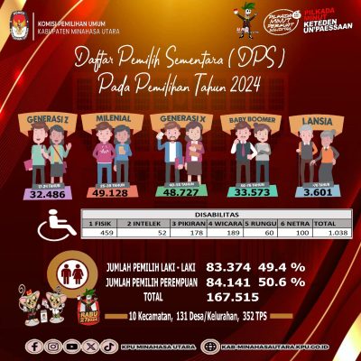 KPU Minut Tetapkan DPS pada Pilkada 2024 Infografis, Minut, Politik|19 August 202410 September 2024by Jeane Rondonuwu SULUTDAILY||Infografis- KPU Minahasa Utara sudah menetapkan Daftar Pemilih Sementara (DPS) untuk Pilkada