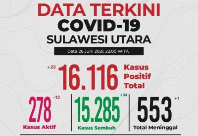 Lagi – lagi Sulut 3 Daerah Masuk Zona Oranye Totabuan, Update Covid-19 Sulut|27 June 202127 June 2021by redaksi sd SULUTDAILY, BOROKO – Pemerintah propinsi Sulawesi Utara terus mengingatkan kepada masyarakat untuk