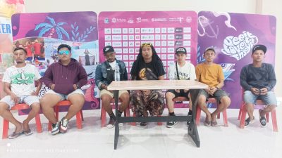 Foto – Grub Band Jarank Pulang saat Konferensi Pers di Lobby BCC Kota Bitung.