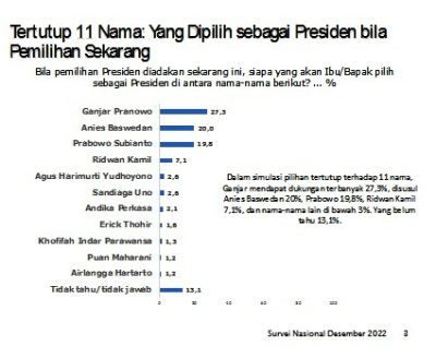 SMRC: Ganjar Terlalu Kuat Bagi Prabowo Dan Anies Politik|22 March 202324 March 2023by redaksi sd SULUTDAILY||Jakarta-Dukungan publik pada Ganjar Pranowo untuk pemilihan presiden (pilpres) masih lebih kuat
