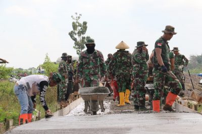 Keroyok Betonisasi, Seragam Loreng Bangkitkan Semakan Bekerja Tekno, TMMD|21 June 202121 June 2021by narto pati SULUTDAILY//Pati-Betonisasi jalan penghubung desa Tamansari dengan desa Sumberarum kecamatan Jaken hari ini