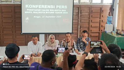 KPU Bitung Tetapkan 2 Paslon Walikota dan Wawalikota Untuk Bertarung pada Pilkada 2024 Bitung, Politik|22 September 202422 September 2024by redaksi sd Foto-Komisioner KPU Bitung saat Menggelar Konferensi Pers