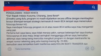 OJK Peringatkan Jangan Tergiur ‘Money Game’ Berkedok Bagi Berkah Rp 25-100 Ribu Ekonomi|6 April 20197 April 2019by redaksi sd SULUTDAILY || Manado – Iseng transfer Rp.25 ribu – Rp.100 ribu untuk