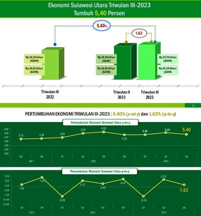 Triwulan III, Perekonomian Sulut Tumbuh 5,40 Persen Ekonomi|7 November 20237 November 2023by Jeane Rondonuwu SULUTDAILY|| Manado -Kepala Badan Pusat Statistik Provinsi Sulawesi Utara Perekonomian Sulawesi Utara