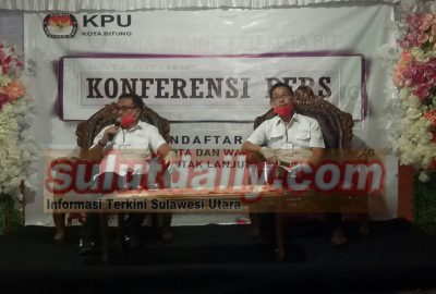 Foto – Ir. Maurits Mantiri, MM dan Hengky Honandar, SE Saat Gelar Konfrensi Pers Usai Dokumen Pendaftaran Dinyatakan Memenuhi Syarat Oleh KPU Bitung