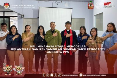 KPU Minut Lantik Pengganti Anggota PPS Desa Resetlemen Kecamatan Likupang Minut, Politik|23 July 202429 July 2024by admin@manado SULUTDAILYII Minut- KPU Minahasa Utara menggelar Pelantikan dan Pengambilan Sumpah Janji pengganti