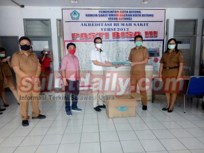 Foto – Deslie Sumampow saat Mendampingi Perwakilan Expedisi Zaitun dalam Memberikan Bantuan APD kepada Dirut RSUD Manembo-nembo dr. Pitter Lumingkewas