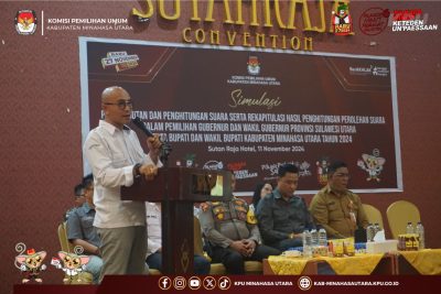 KPU Minut Gelar Simulasi Pemungutan dan Perhitungan Suara Minut, Politik|11 November 202420 December 2024by Jeane Rondonuwu SULUTDAILY|| Minut- Komisi Pemilihan Umum Kabupaten Minahasa Utara (KPU Minut) menggelar Acara