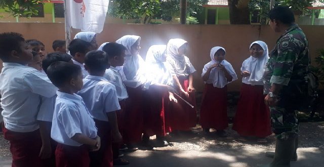 Siswa Dekat Dengan Satgas TMMD, Guru SDN 2 Kedungsari Merasa Bangga. TNI-POLRI News|13 April 202013 April 2020by narto pati sulutdaily//-KUDUS –Personel TNI Satgas TMMD Reguler-107 Kodim 0722/Kudus Sertu Charis terlihat akrab