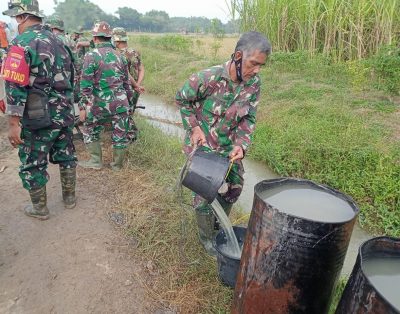 Tong Penuh Berisi Air, Sertu Dedi Amankan Pembuatan Adukan TMMD, TNI-POLRI News|22 June 202122 June 2021by narto pati SULUTDAILY//Pati- Kegiatan TMMD Ke 111 Kodim 0718/Pati dalam program pembangunan jalan desa