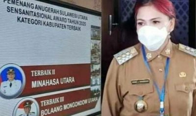 Baliho Vonnie Anneke Panambunan dan Shintia Gelly Rumumpe menghimbau semua masyarakat untuk melawan virus Covid – 19.Foto.Ria
