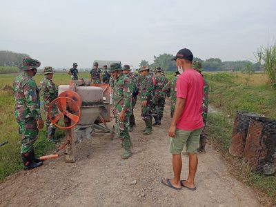 Waktunya Pindahkan Molen, Anggota TNI Siapkan Personelnya TMMD, TNI-POLRI News|26 June 202126 June 2021by narto pati SULUTDAILY//Pati- Mesin pembuat adukan semen, Molen adalah alat utama dalam pengecoran jalan