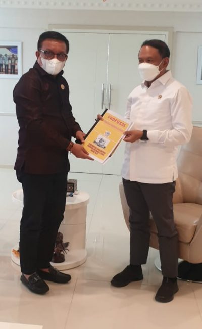Foto – Maurits Mantiri saat Menyerahkan Proposal Kepada Menpora RI, Zainudin Amali