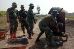 Meskipun lokasinya terletak di antara areal persawahan dan panas terik matahari terasa membakar kulit, namun hal itu tidak menyurutkan niat anggota TNI dan masyarakat untuk terus bekerja.