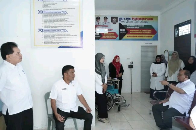 SULUTDAILY || ASAHAN – Untuk meningkatkan pelayanan publik di Kabupaten Asahan, Sekretaris Daerah (Sekda) Kabupaten Asahan Drs. John Hardi Nasution, M. Si didampingi Kabag Organisasi, Kabag Hukum Setdakab Asahan dan Sekretaris Dinas Kominfo Kabupaten Asahan melakukan monitoring dan evaluasi di sejumlah puskesmas dan OPD diantaranya UPTD Puskesmas Gambir Baru dan Dinas Sosial Kabupaten Asahan, Rabu (12/07/2023). Kegiatan Monitoring dan Evaluasi Pelayanan Publik ini dilakukan untuk mengetahui sejauh mana pelaksanaan penyelenggaraan pelayanan publik yang telah diterapkan serta menerapkan standar operasional prosedur dan standar pelayanan, untuk menjadi acuan kepada masyarakat.