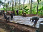 Cuaca yang cerah,juga sangat mendukung pekerjaan pengecoran jalan Satgas TMMD Kodim Kudus bersama warga,tengah menggelar plastik sebagai alas cor beton yang berhubungan dengan tanah,berfungsi untuk menahan agar air semen tidak merembes kedalam tanah”Intinya fungsi dari plastik cor ini,untuk menahan agar uap maupun air tidak langsung masuk ke pori-pori cor juga menghindari air campuran semen pada material cor tidak hilang karena meresap ke dalam tanah”, jelasnya.
