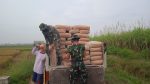 Satgas TMMD Reguler ke 111 beserta warga gotong-royong dalam penurunan material semen.