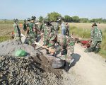 SULUTDAILY//Pati – Anggota Satgas TNI dari kodim Pati dan masyarakat Desa Tamansari, Kecamatan Jaken, Kabupaten Pati, telah menuju ke lokasi TMMD reguler ke 111 TA. 2021 untuk melangsir dan mengangkat pasir, batu split, untuk melanjutkan pelaksanaan ‘pengecoran jalan supaya tidak terjadi keterlambatan bahan yang di aduk untuk pengecoran dan mendapatkan hasil yg maksimal, Senin(21/06).