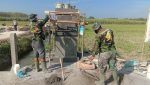 Langit cerah menaungi prajurit TNI yang sedang sibuk di lokasi. Meskipun pengecoran jalan desa di areal persawahan ini sudah terselesaikan. Akan tetapi sampi dengan kini masih ada saja anggota TNI disana.